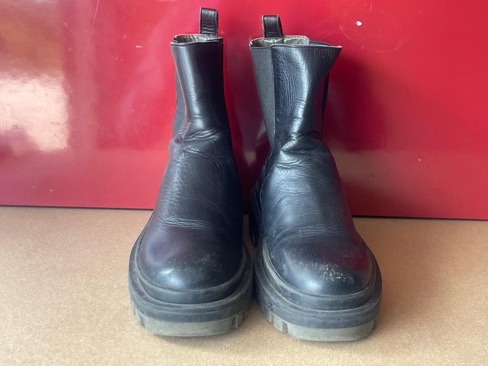 The Zara Women's Black Leather Lug-Sole Chelsea Boots in size 38 are a stylish and versatile choice for women's footwear. Made from high-quality leather, these Chelsea boots are designed to be durable and comfortable for everyday wear. The black colour adds a classic touch to any outfit, making them a versatile option for a variety of occasions. With a lug sole for added traction, these boots are not only practical but also fashionable, suitable for any modern woman's wardrobe.