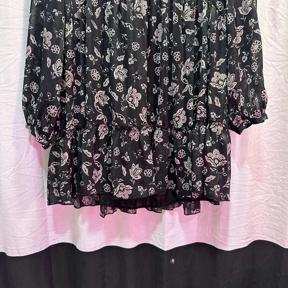 Elegant long sleeve dress. Features floral pattern. Perfect for any occasion.