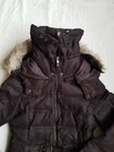 Zara Women's Down Filled Brown Fur trim Hood Winter Jacket Coat Parka Size S. Has been used, shows slight wear on popers, hardwear,cuffs as per pictures. One leather zip puller has crack as per picture, doesn't effect use at all as it has full zip puller, leather pull just extra datail. Overall very good used condition but pleasesee all pictures. Down filled, warm, collar unfolds to more length for extra warmth to neck.
