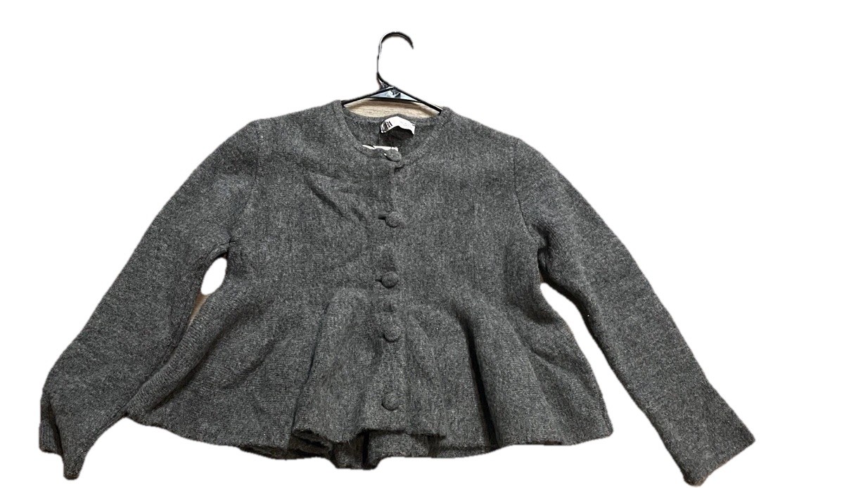 The Zara Women's Charcoal Grey Cropped Knit Sweater is a stylish and comfortable addition to any woman's winter or fall wardrobe. This long-sleeved sweater features a solid pattern and is made from polyester knit fabric, making it machine washable for easy care. With a regular fit and size S, this sweater from Zara is perfect for casual occasions and offers a trendy look in a versatile gray color.