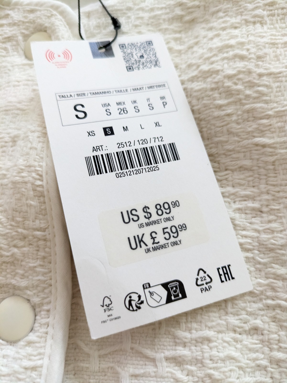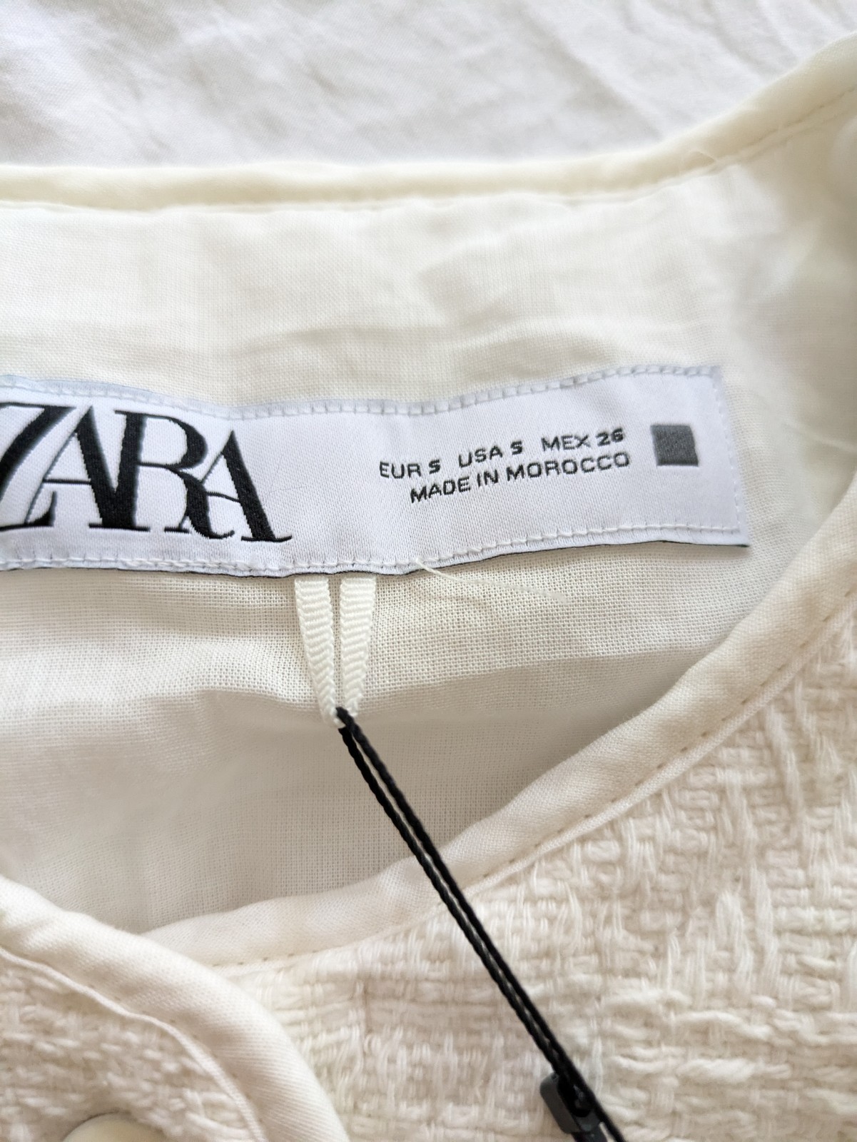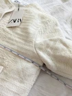 Zara Womens Cream Ivory Quilted Jacket Women's Small Snap Button Pockets NWT New with tags. Measurements in pictures are pit-to-pit and full length. You can see in the last two pictures there is a tiniest pull of two threads.