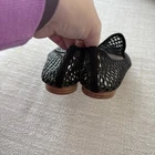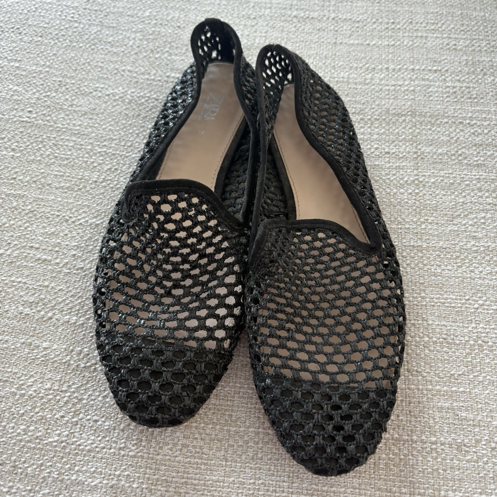 The Zara Women’s Die Cut Effect Black Mesh Flats in size 7 are stylish flats designed for women. Made with a black polyester mesh fabric, these flats offer a unique die-cut effect that adds a modern touch to any outfit. With a comfortable flat sole and a trendy design, these shoes are perfect for adding a chic and effortless touch to your wardrobe. Zara's attention to detail and quality craftsmanship make these flats a versatile and stylish choice for any fashion-forward woman.