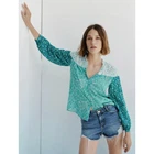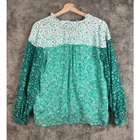 Zara Women's Green Floral Colorblock Print V-Neck Button Front Top Blouse M Medium Excellent condition, no flaws or notable wear. Size medium, approx measurements in photos. 2587/163/131