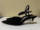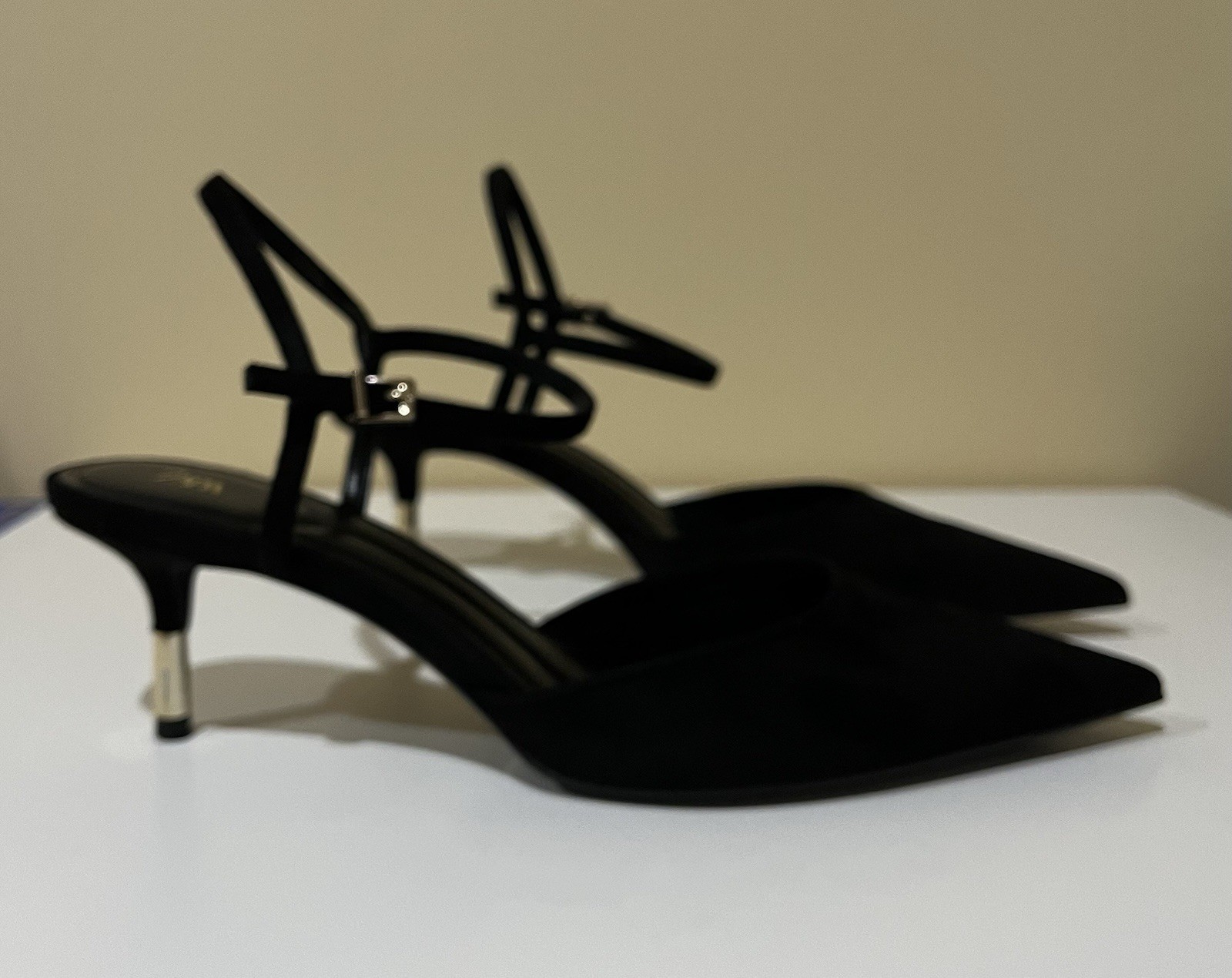 The Zara Women's Heel Pump Shoes in size EU 40/US 9-9.5 are sleek and stylish black pumps made from faux suede, featuring a pointed toe design. These shoes are perfect for a party or cocktail occasion, adding a touch of sophistication to any outfit. The standard shoe width and comfortable heel make them ideal for wearing in the summer, fall, and spring seasons. Whether you're looking to elevate a casual look or add some glamour to your evening ensemble, these Zara heels are a versatile and chic choice for any fashion-forward woman.