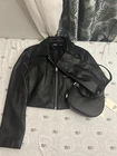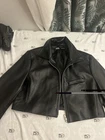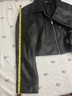 The Zara Women's Faux Leather Button Black Jacket in size Medium is a stylish and versatile piece perfect for various occasions such as travel, casual outings, or business meetings. This motorcycle jacket features a collared neckline, long sleeves, and pockets for added convenience. Made from soft faux leather with a polyester lining, this mid-length jacket is designed for fall, winter, and spring seasons, offering a regular fit and a sleek black color that adds a touch of edginess to any outfit. Ideal for those looking for a biker-inspired look with a modern twist.