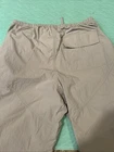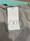 Zara Nylon Parachute Style Pants Womens XS Tan Khaki Elastic Drawstring NWT Cute and stylish. Light weight nylon type material….label says 100% . Good clean condition. Draw string at waist and at clef openings. waistband also has elastic that stretches to 17”.