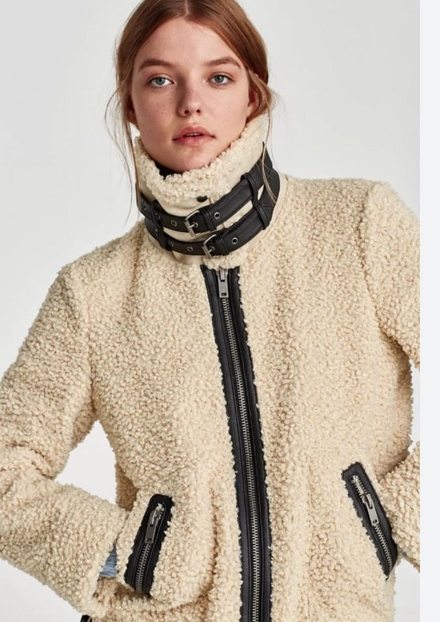 Zara Sherpa Fleece Full Zip Bomber Faux Shearling Flight Jacket Women M NWOT Pit2pit 21” Shoulders 17” Sleeve length 24” Length 26” Exterior 100% polyester, decorations 100% sheep leather Excellent condition