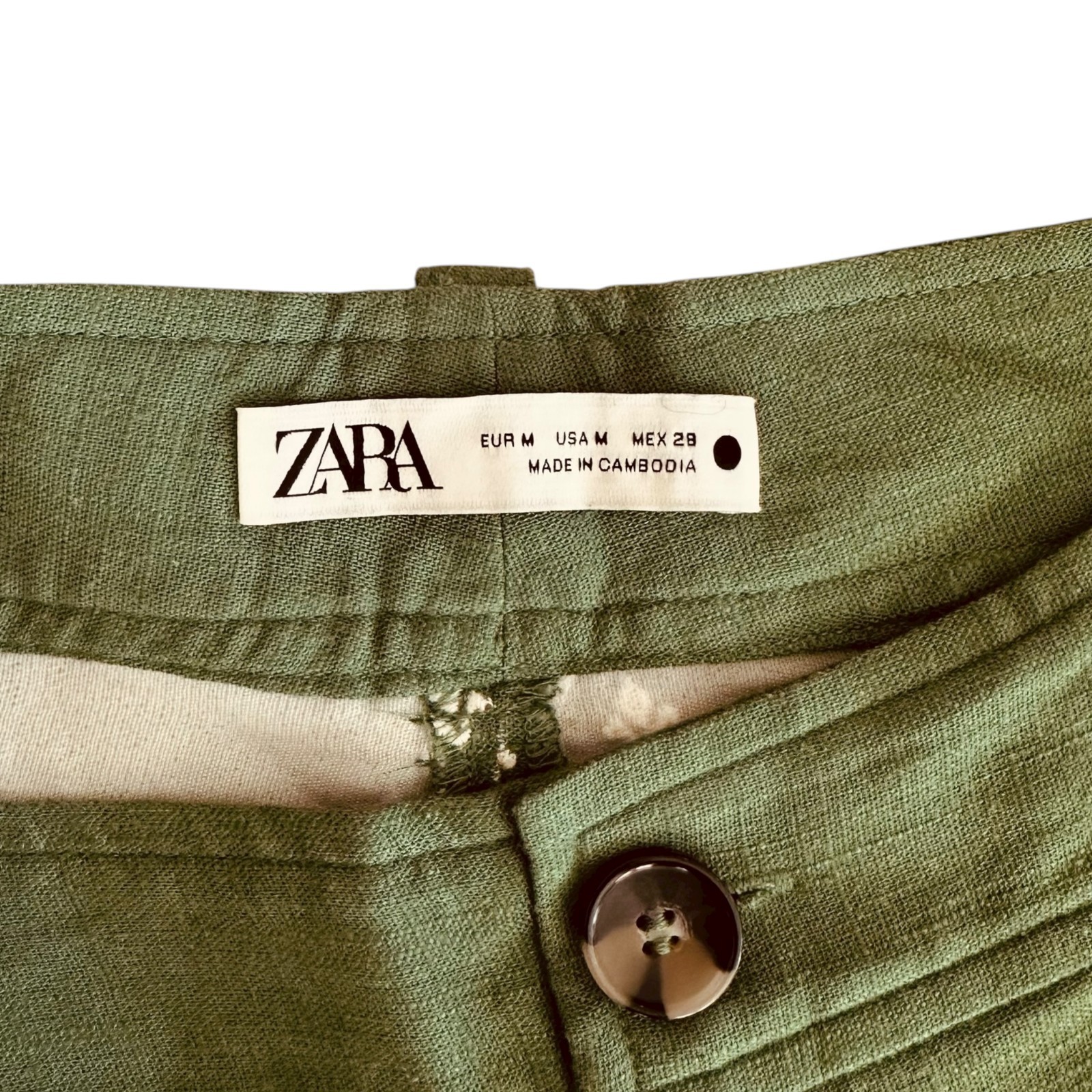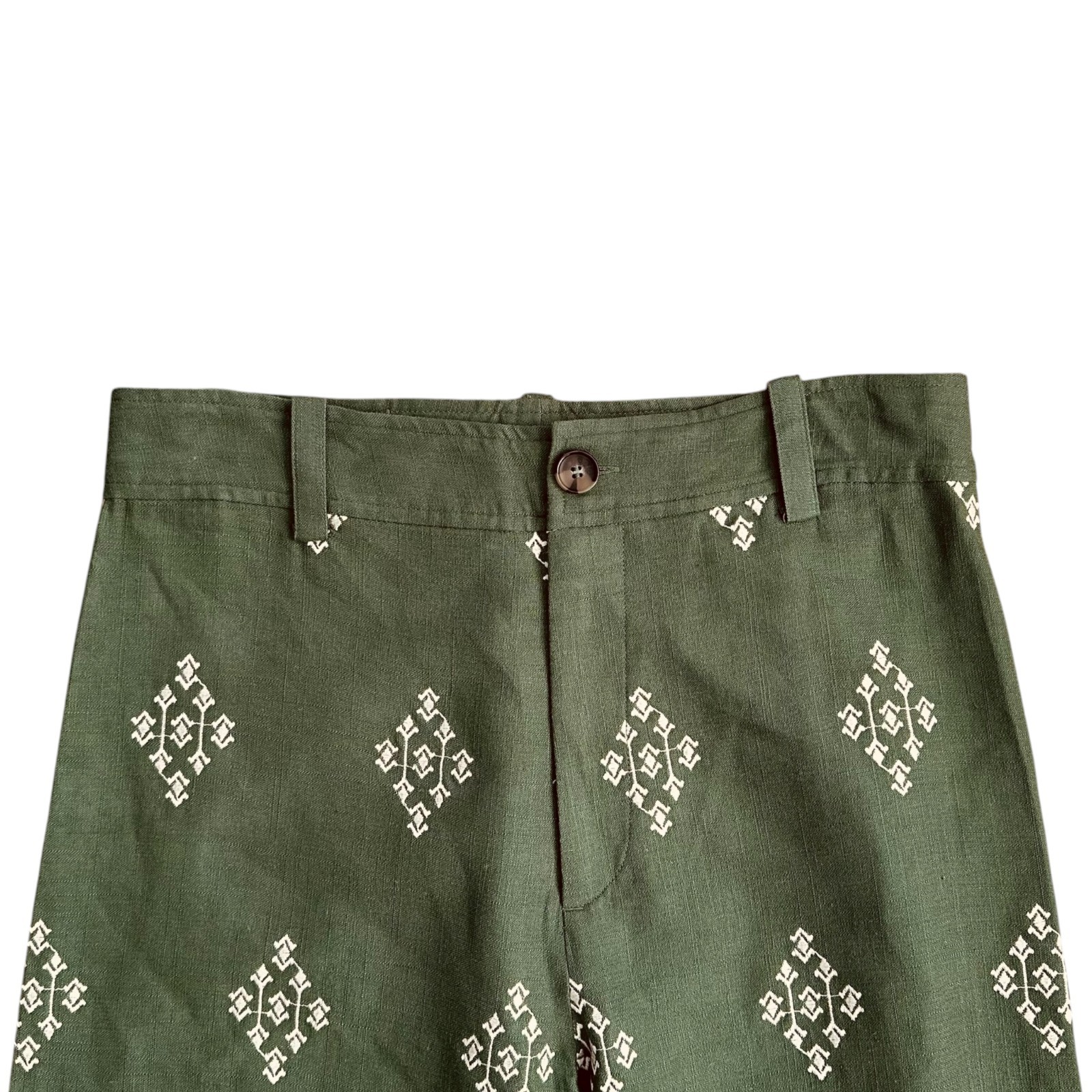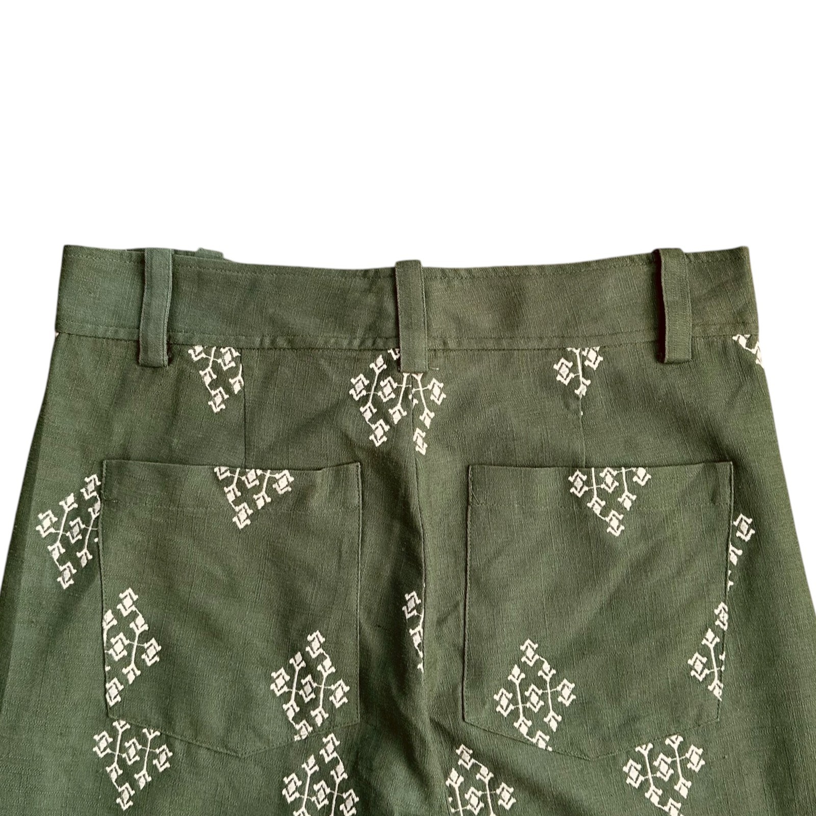 Zara green and white embroidered cropped pants - Zipper fly-front with button closure - Back patch pockets - Wide legs Excellent pre-owned condition. No stains or other flaws. Size M Care - Hand wash Fabric - 83% viscose / 17% linen Waist - 31 inches Rise - 12 inches Hips - 39 inches Inseam - 25.5 inches Please verify measurements, as clothing sizes vary greatly between manufacturers. Measurements are approximate. Fast shipping. Comes from a non-smoking home. Payment Please pay within 48 hours of your order. Shipping I will ship your item within 1-2 business days of receiving a cleared payment (except on US holidays) to get your order to you quickly. I ship 6 days a week! I discount shipping when you buy more than one item from me. International Customers Your shipping costs are automatically calculated based on your location and the weight of the package. Sorry but I can't offer free shipping or free returns on International shipments. Import duties, taxes and charges are not included in the item price or shipping charges. These charges are the buyer's responsibility. All items are listed on the customs form accurately and the price listed will be the cost of the item (not including shipping).
