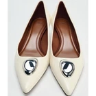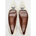 Zara Women's Metal Detail White Leather High Heel Shoes Pointed Toe Size US 9 THIS ITEM IS OUT OF STOCK AT ZARA'S STORE Heeled leather shoes. Metal plate on the front. Pointed toe. UPPER 100% sheep leather LINING 100% polyester SOLE 100% polyurethane thermoplastic INSOLE 92% polyurethane 8% polyester