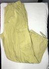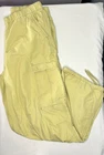 Zara Cargo Pants Womens XL Yellow Elastic Waist Lightweight Pockets Drawstring Hem Condition: Great Used Condition –Intentionally distressed at hems, Some minor color fading from wash (see photos), but no other significant flaws 100% cotton construction for breathable comfort Elastic waistband with inner drawstring for adjustable fit Two large cargo pockets with flaps at each leg, two front hand pockets, one rear welt pocket Elastic adjustable drawstring hems at ankles Tag size: XL (Womens); please refer to photos for ruler/measured flat width, rise and inseam Color: Pale yellow Made in Bangladesh Perfect for casual wear, lounging, outdoor activities, or streetwear style