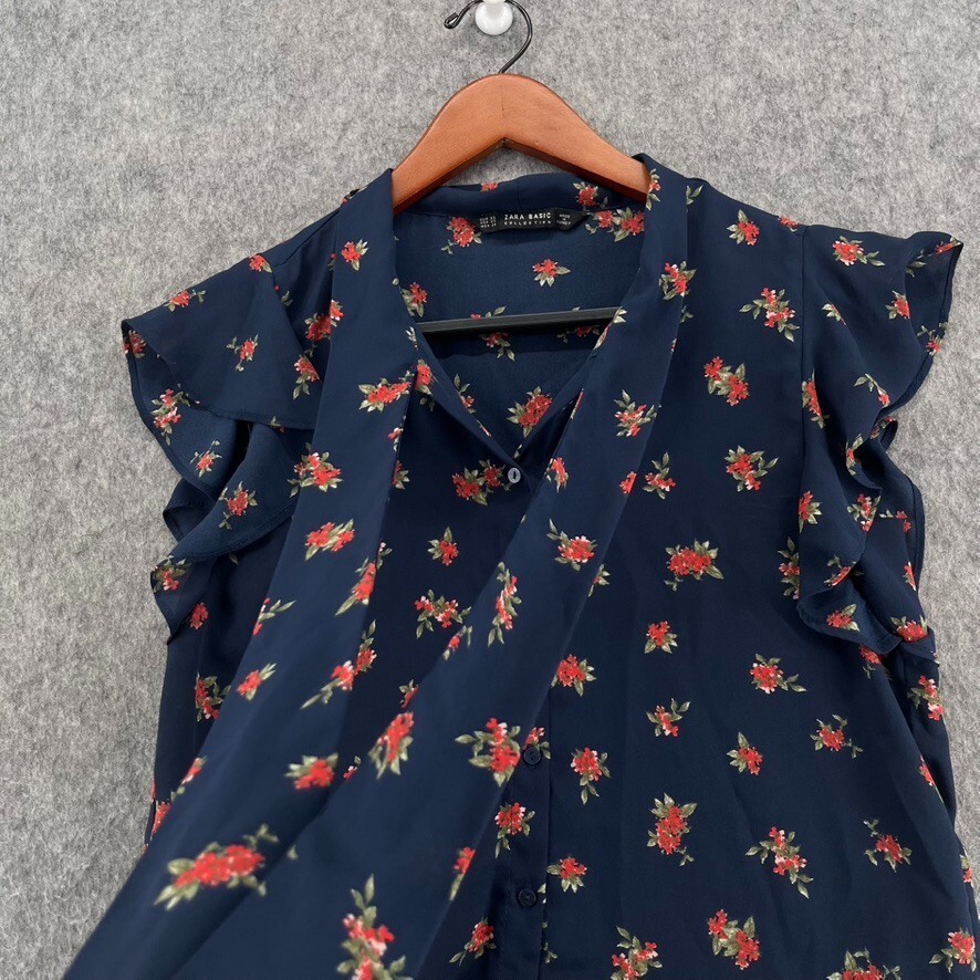 $ 5.55Parker Silk Blouse Sz S Catherine Red Metallic Floral Sheer Ruched puff sleeves