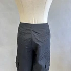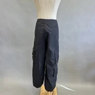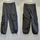 Zara black cargo pants. Very versatile pair with anything from a blouse, corset top, or a tee Looks great with anything from a sandal to chunky docs! Nylon fabric Drawstring at ankles for wide leg or tapered fit Super trendy blogger influencer fave Streetwear gorpcore goth cool girl NYC utility fits euro trash Measurements are all taken with the garment lying flat Waist: 14.5" Rise: 11" Inseam: 31" Good preowned condition For reference the mannequin is a size Medium: Shoulder: 14.9" - Bust: 33.4" - Waist: 25.1" - Hip: 33.0"