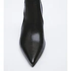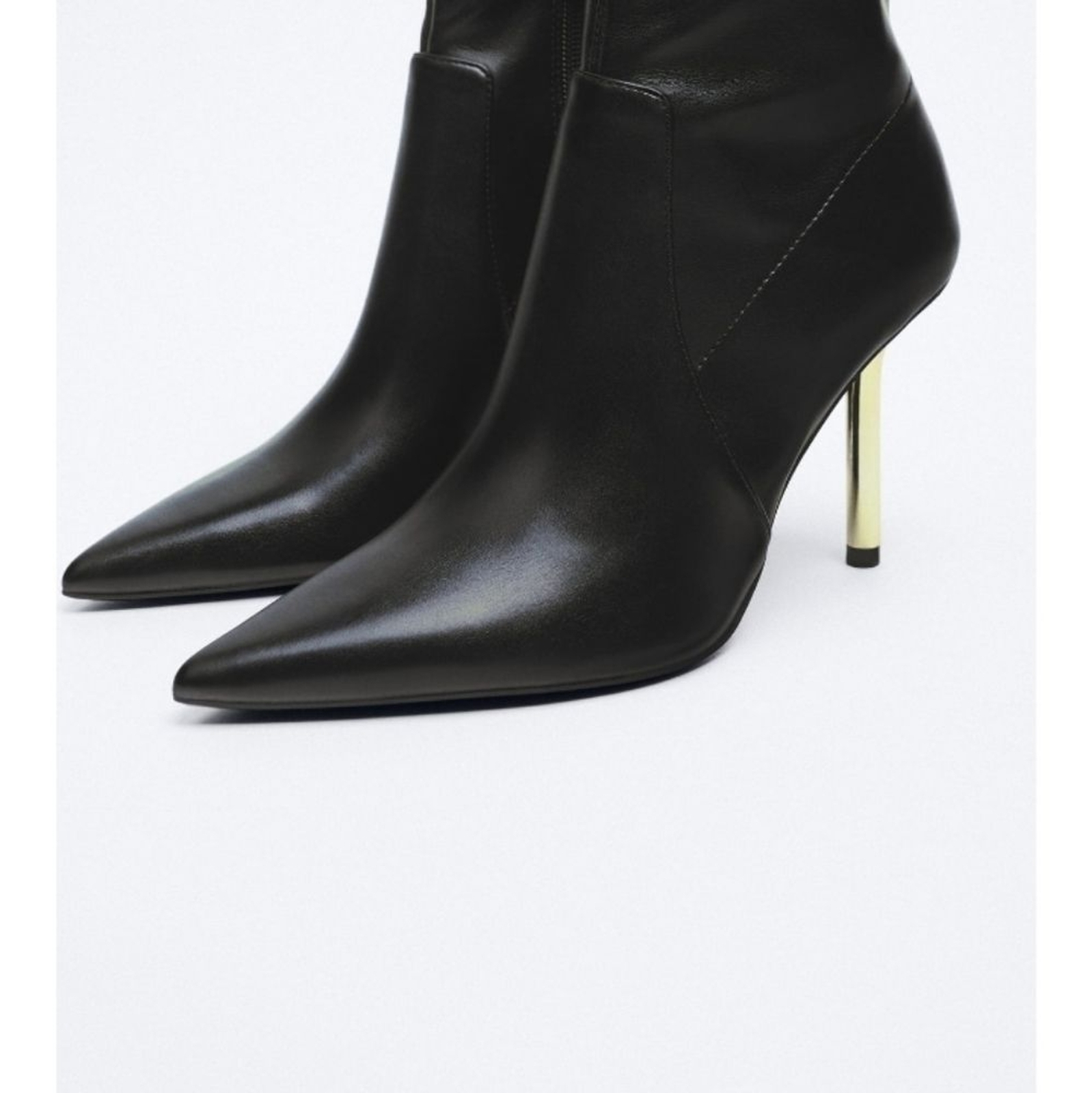 heeled ankle boots, metallic stiletto heels, pointed toe, side zipper, stretchy shaft, pointed toe