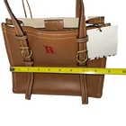This Zara mini tote bag is the perfect accessory for any occasion. With a width of 9 inches, a height of 7 inches, and a depth of 6 inches, it has enough space for your essentials while still being compact enough to carry around effortlessly. The exterior is made of coated canvas in a beautiful brown color, and the lining is beige fabric. The bag has a solid pattern and features gold hardware. It is a designer piece from Zara's product line, perfect for city use. . It is suitable for travel, casual outings, and workwear.(no straps)