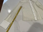**NOTE: size Medium but fits like a small I love love love this beautiful womens top by ZARA. I bought it on this site last week and sadly, it runs small. I’m a true medium and it is just not a good meduim fit. But def a small fit. I’ve provided pics with measurements so buyers can see. It’s like-new, zero evidence of even being ever worn. It gives vibes of Blake in ‘A Simple Favor’ Free shipping via USPS within continental USA (sorry Alaska and Hawaii). No international shipping No returns