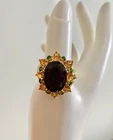 $ 15.82Retro Inspired Ring Yellow Cabochon Silver Tone Band Size 7 Big Bold Statement
