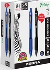 ZEBRA CUSTOM BULK PACK OF 28 PENS, 14 Black Pens & 14 Blue ink pen included in set, Zgrip, 7mm fine point ball point click pen featuring low viscosity for a smooth, skip-less & best quality writing experience and quicker writing speeds Highly Recommended for business executive, Soft, latex-free rubberized grip provides increased comfort while the plastic barrel allows for ink supply visibility Great to use for office pens, signature pens, School supplies for Adults and kids. Convenient metal pocket clip for quick, easy access, and to ensure you never lose your favorite pen again Vivid, reliable assorted color gel ink and solid pen construction make for a great everyday writing tool! Assorted multipack includes Black, Blue & Red colors. Ideal to use in a notebook, journal, planner, legal pad, on invitation cards and almost any paper surface LOOKING FOR AN EVERYDAY TOOL THAT DOESN’T LOOK OR PERFORM LIKE ONE? Zebra’s Z-Grip brand of pens is where simple, effective style meets high-performance writing. The Z-Grip Ballpoint Retractable Pen delivers on all fronts: value, performance, comfort, and style. There’s no need to compromise on any of the attributes you like in your pens as the Z-Grip Retractable Ballpoint Pen features easy-glide ink, a comfort ridged grip and a metal clip for durability. The silky smooth low viscosity ink provides quicker writing speeds and a smooth, skip-less writing experience, making the Z-Grip Retractable Ballpoint Pen ideal to use for note-taking, journaling, and long meetings. A soft, latex-free rubberized grip provides increased comfort while the plastic barrel allows for ink supply visibility. The convenient metal pocket clip allows quick access and ensures you will never lose your favorite pen again. Now you can get the job done right every time with a reliable, smooth-flowing pen! You’ll feel the difference when you write, but not at the cash register. BALLPOINT PEN IS NOT REFILLABLE.