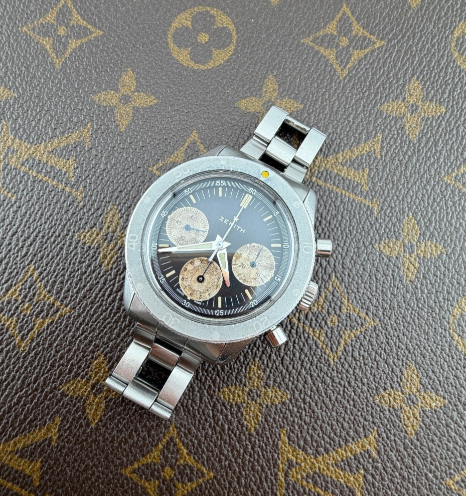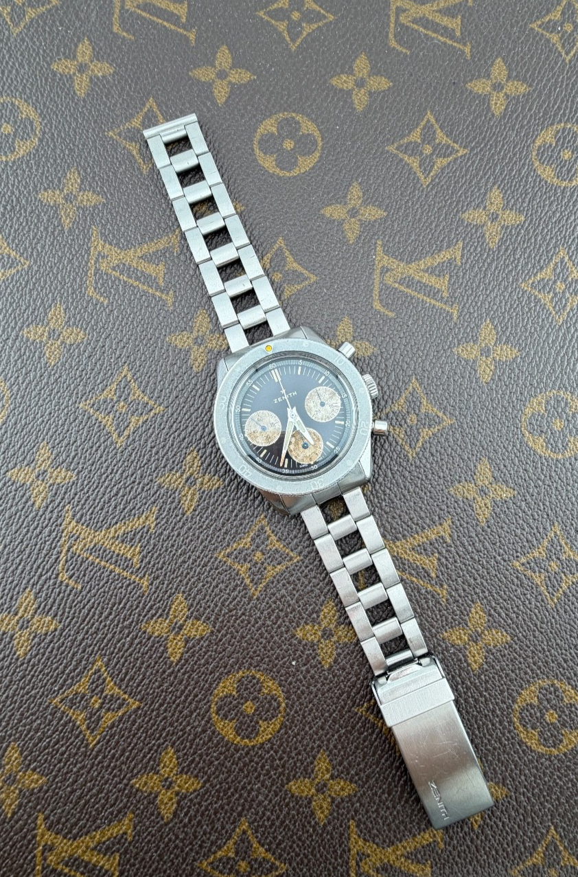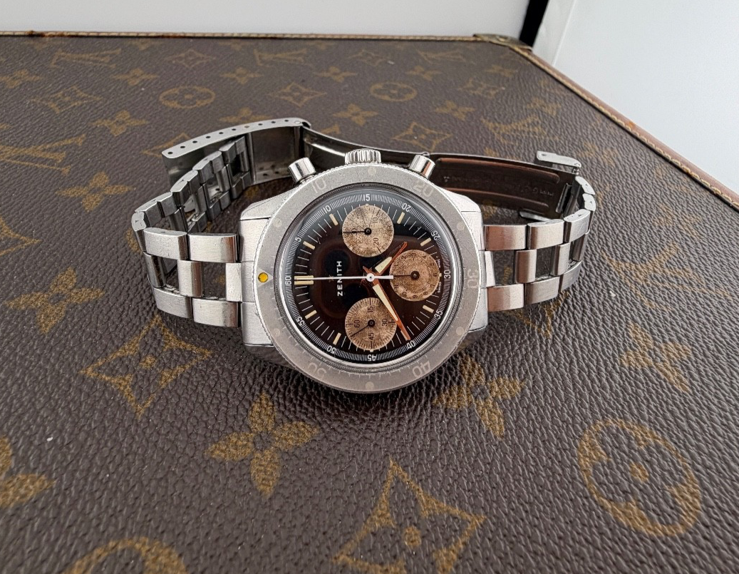 PROPONIAMO; -Marca: ZENITH MOD. SUB SEA -Cassa: ACCIAIO DA 22 , FONDELLO A VITE ORIGINALE CON LOGO CENTRALE -Movimento :ORIGINALE CALIBRO 146 H ORIGINALE IN OGNI SUO COMPONENTE -Vetro:PLEXYGLASS -Corona:ORIGINALE -Ghiera: GHOST ORIGINALE -Tasti: POMPA COEVI -Quadrante: NERO ORIGINALE TRIZIO -Lancette: ORIGINALI TRIZIO -Cinturino/Bracciale: GAY FRERES ORIGINALE CON FINALI ORIGINALI " ZF" , CHIUSURA DEPLOYANTE CON SICUREZZA -Scatola e documenti: NOSTRA POCHETTE IN VELLUTO COMPRESA -Condizioni : OTTIME ALCUNI SEGNI DI USURA DOVUTI AL TEMPO -Revisionato:SI -Uomo/donna/unisex:UOMO PER QUALSIASI DUBBIO CONTATTATEMI ,RISPONDEREMO IL PRIMA POSSIBILE