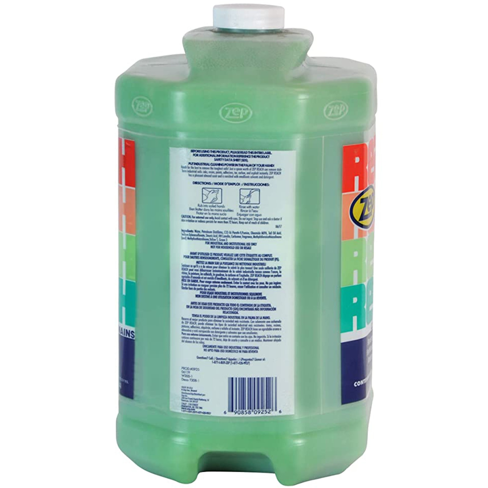 ZEP Our eBay Store About Us Contact Us Add to Favorite Sellers Zep Reach Industrial Strength Hand Cleaner - 1 Gallon (Case of 4) - 92524 - Removes Stubborn Shop Soils Zep Reach Industrial Strength Hand Cleaner, your ultimate solution for tackling tough industrial soils, grease, grime, ink, resins, tar, and more. Specially formulated to meet the demands of hardworking hands in industrial settings, Reach goes beyond mere cleanliness to deliver a superior clean. This is the industrial hand soap that you need. Reach Industrial Hand Cleaner boasts a thick formula that thoroughly penetrates and removes ground-in dirt and grease. Infused with scrubbing pumice, this pumice soap effectively scrubs away tough soils, oil, paints, adhesives, and carbon deposits. The pumice granules ensure that even the most embedded grime is lifted, leaving your hands impeccably clean. But Reach doesn't stop there. We understand the toll that tough cleaning tasks can take on your skin, which is why Reach is enriched with lanolin, Aloe Vera, and other emollients. This unique blend not only powers through dirt and grime but also works tirelessly to protect your skin, combating chapping and dryness to leave your hands feeling soft, smooth, and rejuvenated after every use. Experience the convenience of a hand cleaner that rinses away completely, quickly, and effortlessly, leaving behind no sticky residue or lingering odors. With Reach, your hands are left impeccably clean and refreshed, plus, for added convenience, each bottle of Reach Industrial Hand Cleaner comes with a convenient pump included. Say goodbye to messy, hard-to-use hand cleaners and hello to the effortless cleanliness and comfort of Reach. Whether you're working with tar, asphalt, resins, or carbon in the garage, on a construction site, or anywhere in between, trust Reach Industrial Hand Cleaner to keep your hands clean, protected, and ready for whatever challenges come your way. This formula is ideal for professionals who need reliable hand care that delivers results. Try Reach today and experience the difference for yourself. Features POWERFUL FORMULA: Reach includes a solvent, detergent, and pumice blend to supply a penetrating cleaning action. SPECIAL FORMULATION: For removal of stubborn industrial soils, grease, grime, ink, resins, adhesives, tar, carbon, and asphalt. ENRICHED WITH: Lanolin and other emollients to work against chapping and drying of hands. FRAGRANCE: Reach leaves hands with a pleasant almond fragrance. FRESH: Reach leaves hands with a pleasant almond fragrance Massage the pumice liquid soap into soiled hands, ensuring thorough coverage, then rinse off with water to cleanse effectively. Reveals cleaner hands than ever before. Works with a dispenser. Product Details Color Height Length Width Product ID