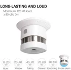 Smart smoke sensor Detecte smoke, spot dangers in advance and reduce risks of fire Instant alert Alert you with a loud 85 dB alarm when smoke has been detected EASY INSTALLATION This mini smoke alarm package with a 3M adhesive tape that can help you easily stick it on platform in seconds Long Battery Life : The low power consumption enables an incredible lifetime of up to 3 years with the built-in lithium-ion battery (CR123A/CR17335); This 10 year smoke alarm provides reliable uninterrupted 24/7 protection so you can sleep safely.
