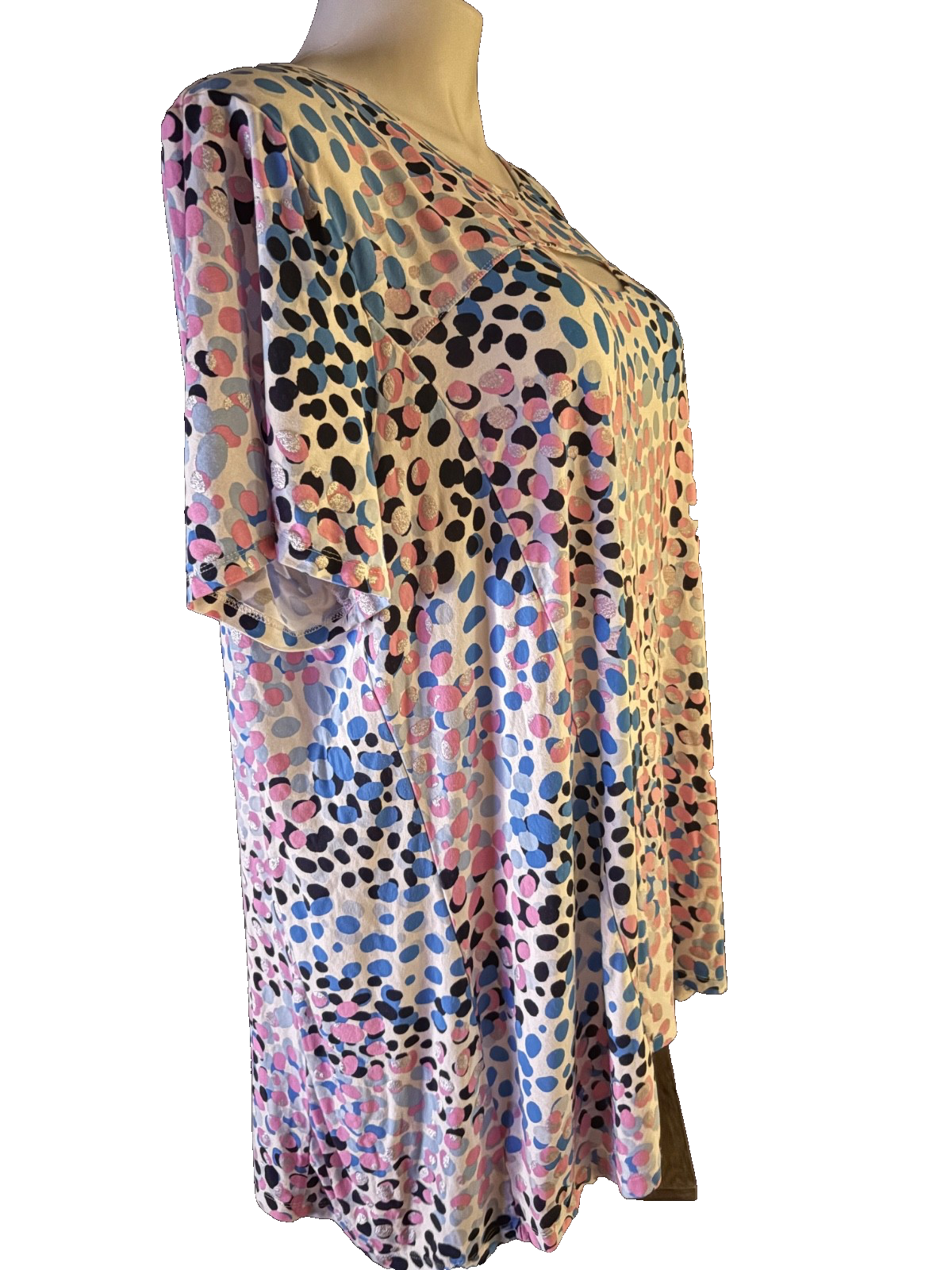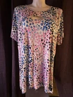 The ZIM & ZOE Plus Size 26 White with Pink & Blue Dots Stretch Blouse Top Tunic is a stylish and comfortable addition to any woman's wardrobe. Made by the brand Zim & Zoe, this blouse is designed for plus-size women and features a multicolor dot pattern in pink and blue. The stretch material ensures a flattering fit, making it a versatile piece that can be dressed up or down for any occasion. Perfect for curvy women looking for trendy and fashionable clothing options.