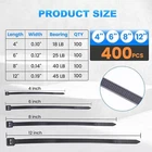 About this item: 【Zip Ties Packing Including】Zip Ties Total:400pcs Cable Zip Ties.4inch X 100pcs,6inch X 100pcs,8inch X 100pcs,12inch X 100pcs.Each size cable tie has a wide range of uses,suit for multiple purpose projects in different situations. 【Cable Ties Tensile Strength】Loop tensile strength: 4inch-18pounds,6inch-25pounds,8inch--40pounds. 12inch-45pounds.Each size cable tie has a wide range of uses,suit for multiple purpose projects in different situations. 【Black Zip Tie Self-locking Design】zip ties self-locking fastener design,strong durable powerful, The working temperature of Nylon plastic ties ranges from -31℉~185℉(-35℃~85℃). Thus, the tie wraps assorted sizes are safe to use even when the black zip ties get heated up or cool down. 【Multiple purpose Zip Ties】 Perfect Choice for home, office, garden,garage, travel and workshop tidy. cable zip ties are the perfect choice for many indoor & outdoor projects like organizing electrical wires, hanging lights and banners, attaching garden fences/ net, plants,securing bike/ car accessories and much more. 【Warranty】: Our cable ties come with a 1-year warranty. If there are any quality issues during the warranty period, customers will receive a 100% refund.