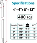 This pack of 400 black cable ties from ANOSON is perfect for indoor and outdoor use. The ties are made of nylon material and are UV resistant. They come in assorted sizes of 4", 6", 8", and 12", making it easy to choose the right size for your project. The zip style of these ties makes it easy to put on and take off, and the package dimensions are 12.62 x 5.03 x 1.4 inches. These ties are ideal for use in various settings, such as business and industrial applications. Get your hands on this pack of ANOSON zip ties today to complete your project with ease! Zip Ties Assorted Sizes(4”+6”+8” +12”), 400 Pack, Black Cable Ties, UV Resistant About this item: 4 Diff Sizes: 4", 18 lb | 6", 25 lb | 8", 40 lb | 12", 45 lb. 400 Pack: 4", 100 Pack | 6", 100 Pack | 8", 100 Pack | 12", 100 Pack. Multi-purpose Use: Multiple sizes and tensile strength are suitable for various situations. Indoor & Outdoor: Perfect for home, office, garden, garage, organizing electrical wires, hanging lights, attaching fences, etc. Warranty: Customer will receive a 100% refund if any quality issue. Features: Zip Ties Assorted Sizes 4"+6"+8"+12", 400 Pack We will continue to improve the product quality, provide top grade products and the best service for our customers. Make the best use of your purchase! With 400 zipties in each package, you don't have to worry about running out in the middle of your project. High Quality: Black wire ties are made of UV resistant halogen free nylon 66. Operation temperature is -40℉to 185℉with UL94V-2 flammability. Higher Tensile Strength: The tensile strength of our zip tie is 18 lb(4"), 25 lb(6"), 40 lb(8") , 45 lb(12"), higher than others. Our tie wraps width is 0.1in(4"), 0.12in(6"), 0.14in(8") , 0.14in(12"), wider than industry standards. You can use our cable tie with confidence without worrying they will break. Self-locking Design: Ziptie can be easily locked in, tightly and securely. One-piece construction for consistent performance and reliability. Multi-purpose Applications: Plastic ties perfect for home, office, garden,garage, travel and workshop tidy. Tie straps perfect for organizing electrical wires, hanging lights and banners. Zip-ties perfect for attaching fences/net, plants, securing bike/car accessories, etc. Warranty: Zip ties have a 1-year warranty period. Our customer will receive a 100% refund if any quality issues under warranty period. Tips: 1. Please keep out of reach of the children. 2. Please keep it sealed for long-term use. 3. Please use zipties in proper temperatures and tensile strength. Package Includes: Black Zip Ties 4”+6”+8”+12”, 400 Pack