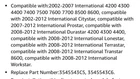 New just opened for pictures Compatible with:2002-2007 International 4200 4300 4400 7400 7500 7600 7700 8500 8600, compatible with 2002-2012 International Citystar, compatible with 2007-2012 International Prostar, compatible with 2008-2012 International Durastar 4200 4300 4400, compatible with 2008-2012 International Lonestar, compatible with 2008-2012 International Terrastar, compatible with 2008-2012 International Transtar 8600, compatible with 2008-2012 International Workstar.