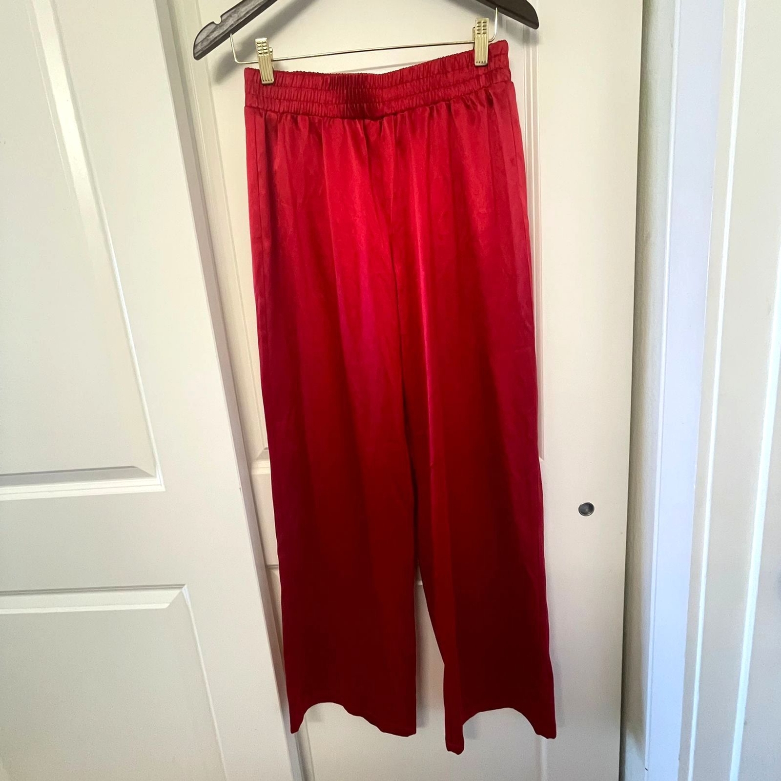 Zoe Women's Red Satin Pajama Wide Leg Elastic Waist Pant Size M Slip into luxurious comfort with these elegant red satin pajama pants from Zoe. Designed with a relaxed wide-leg fit and smooth, silky fabric, these pants are perfect for lounging, sleeping, or relaxing in style. Product Details: Brand: Zoe Size: Medium (M) Color: Rich red Style: Wide leg pajama/lounge pants Material: Soft, silky satin polyester Waist: Full elastic waistband for a flexible, comfortable fit Condition: Pre-owned in excellent condition. No stains, snags, or signs of wear. Clean and ready to wear.