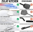 Zulay Kitchen Stainless Steel Metal Wok Spatula - Durable Spatula, Silver Product Details Material: Stainless Steel Color: Silver Brand: Zulay Kitchen Size: Wok Spatula Product Dimensions: 14.8"L x 4"W Item Weight: 0.14 Kilograms Is Dishwasher Safe: Yes Shape: Rectangular Handle Material: Stainless Steel Material Type Free: Plastic Free, Silicone Free, Wood Free Recommended Uses For Product: Cooking in deep woks, Removing food without splatter Manufacturer: Zulay Kitchen Item Weight: 4.9 ounces Country of Origin: China Item model number: SS Wok Spatula Is Discontinued By Manufacturer: No PREMIUM STAINLESS STEEL: An excellent culinary innovation that will give you delicious stir-fry dishes at home. Since most recipes require high amounts of heats, it's essential to get a spatula that's long enough so your hands do not burn. Made from premium quality stainless steel, this 14.8 inches stainless steel long spatula is excellent for cooking in very deep woks to remove food without splatter. Ergonomic handle is designed for a comfortable grip when holding. DURABLE & EASY TO GRIP: This stainless steel wok spatula is stylish, sturdy, and was built with a convenient length that is engineered to prevent oil splash when stir-frying. Durable steel design does not bend at all when turning or lifting heavier foods.The edge on the spatula head is designed to help scoop oil and food during cooking. A MUST HAVE IN EVERY KITCHEN: If you are on the hunt for an inexpensive yet high-quality wok spatula- look no further! It makes a great gift with its classy design to anyone who loves to cook as it easily complements any kitchenware. This product is a truly worthy addition to anyone's arsenal of kitchen cooking utensils. EASY TO CLEAN & STORE: Lightweight and easy to clean. To put it simply, this beautiful mirror-finished stainless steel wok spatula can be washed by hand or in the dishwasher. Includes a built-in hanging hole on the handle for easy storage after use.