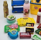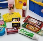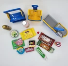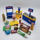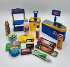 Zuru Mini Brands Lot Of 16 Grocery Food And Store Items Series 2 Mini Mart. Includes some store fixtures ( check out, cart, shelf) food items ( Pringle, peep, jolly rancher), and store items (lotion, sun screen post it's, tooth paste) includes gold