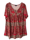 a. Jesdani Top Womens 3X Red Paisley Stretch Knit Henley Neck Tunic Short Sleeve. Condition is Pre-owned. Shipped with USPS Ground Advantage.