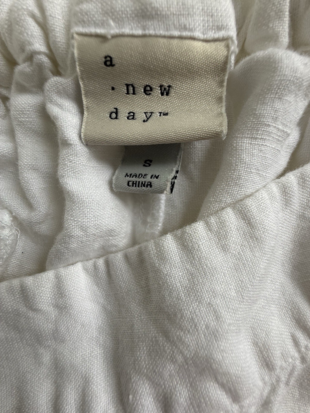 Color:WhiteVintage:NoStyle:Hot PantsOccasion:CasualDepartment:WomenPerformance/Activity:WalkingPocket Type:Slash PocketMaterial:Linen BlendSize Type:RegularFit:RegularHandmade:NoFeatures:LightweightCountry of Origin:VietnamGarment Care:Machine WashableSeason:Summer, SpringAccents:RuffleSize:SBrand:A New DayPersonalize:NoFront Type:Flat Front