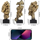 aboxoo 3 Pcs Thinker Statue, Silence is Gold Abstract Art Medium, Product Details Color: Gold Brand: aboxoo Theme: Figures/People, Abstract, Home Decor Material: Resin Style: Modern,Simple Product Dimensions: 2.95"D x 2.95"W x 6.5"H Recommended Uses For Product: Table Mounting Type: Freestanding Cartoon Character: Human Finish Type: [POSSIBLY] Glossy Special Feature: Abstract Art, Modern Home Resin Sculptures Included Components: 3 Thinker Statues Item Weight: 481 Grams Product Care Instructions: Wipe Clean Collection Name: All Seasons: All Seasons Number of Items: 3 Item Weight: 1.06 pounds Manufacturer: aboxoo 【Handmade Crafts&Beautiful Design】: retro resin, abstract art, beautiful and vivid art. Vivid facial gesture modeling. Administrative levels are different, line outline is concise and clear, stereo feeling is strong, simple sense is strong, enjoy the beauty of life, let your home be simple individual character. The model of the thinker, silence is golden. It is the crystallization of human wisdom, fully embodies the creativity and artistry of human beings. 【Product Size】: L/W/H:7.9"/7.9"/4.3" inches (20 * 20 * 11cm). Each product is individually carved by hand, the size may be a little wrong. Creative sculpture using high quality resin as the main raw material, after mold casting, 100% new, high quality. No odor, non-toxic and harmless. 【Design Concept】: "Three No's": don't listen to what you shouldn't hear, don't look at what you shouldn't see, learn that silence is golden, avoid unnecessary mistakes, avoid disputes, and always follow a calm mind to walk, expressing the idea of not looking, not listening, and not talking. With black as the main color, the black decoration symbolizes solemnity and dignity.It is a symbolic sculptural ornament. 【Home Decor】:Creative home decoration living room unique and interesting sculpture decoration design. Suitable for space, bookcase, bookcase, desk, table top, wainscoting, window, porch. Can be placed in the office, living room, counter, study, office or company, enhance the artistic atmosphere of the environment.Its perfect size makes it easy to adapt to a wide range of furniture. 【Rating Explanation】: The customer's shopping experience is very important to us, and all the new batch of products have been upgraded and improved, and they are given to customers at a very affordable price. I hope this can enhance our reputation, and you will be very satisfied with the receipt of the goods.