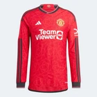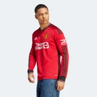 adidas 2023-24 Manchester United Men's Stadium Home Long-Sleeve Jersey Like club, like city. This adidas Man Utd football jersey forms a cast iron link to Manchester's global influence. Taking design elements from a nearby Industrial Revolution-era bridge, it displays a repeating Lancashire Rose-inspired geometric pattern on the front. Moisture-wicking AEROREADY and woven team details ensure it keeps fans comfortable and proud of their team. Made with 100% recycled materials, this product represents just one of our solutions to help end plastic waste. Slim fit Ribbed crewneck 100% recycled polyester tricot AEROREADY Mesh inserts on sides