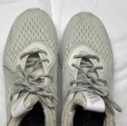 The adidas AlphaBounce Em Chalk White sneakers in size 8.5 are designed for women who value both style and performance in their athletic footwear. Featuring the iconic adidas branding, these shoes are part of the AlphaBounce product line, known for their comfort and support. The chalk white color adds a touch of elegance to the sleek sneaker design, making them a versatile choice for everyday wear or workouts. The Alphabounce model is known for its cushioning and energy return, ensuring optimal comfort and support for the wearer. Stain on front of shoe
