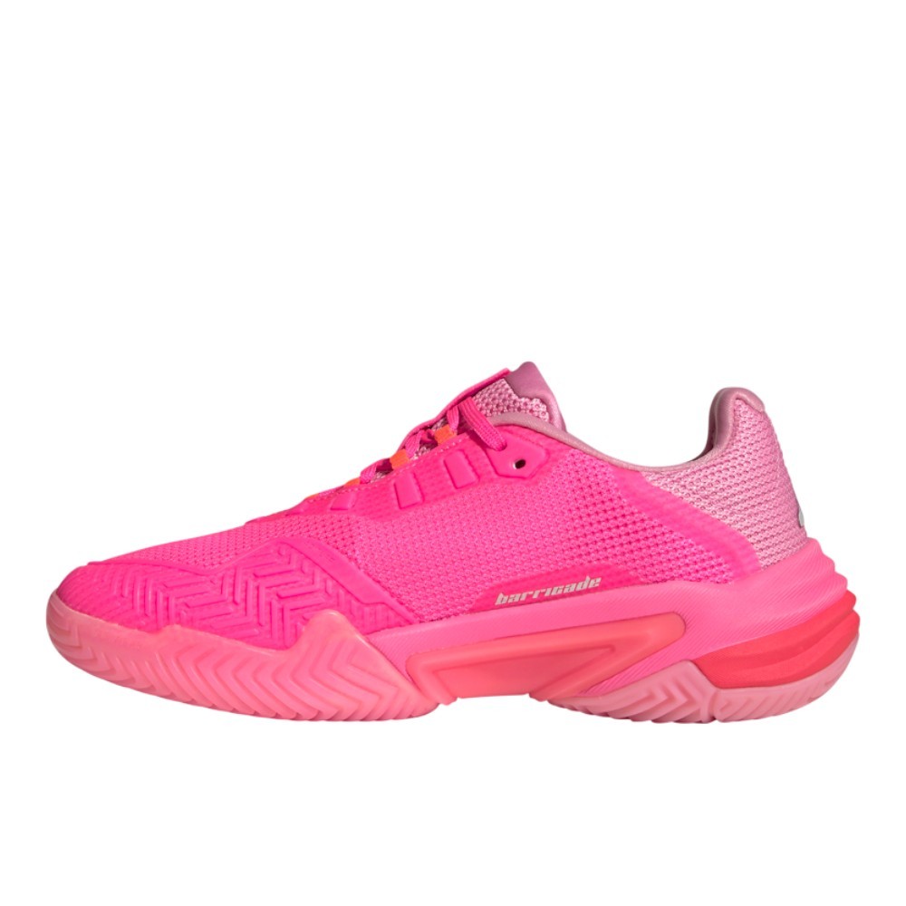 Barricade 13 Clay Tennis Shoes Product Details Regular fit Lace closure Mesh upper Geofit Sensepods REPETITOR+ midsole Color: Lucid Pink Embrace the court with the Barricade 13 Women's Clay Tennis Shoes. Designed for adult women, these shoes offer a regular fit and are made from a blend of textile and synthetics, ensuring durability for performance tennis. The asymmetrical lacing provides a secure fit while the ADITUFF recycled material in the forefoot area offers abrasion resistance through sustainability. With an ADIWEAR 2.0 rubber outsole, enjoy superior grip on hard court surfaces. The Torsion stability concept using an engineered TPU shank ensures ultimate stability to control sliding and intense changes of direction, keeping your foot locked and secured. Experience superior comfort with a dual density Repetitor midsole that provides a super soft, energetic platform paired with stability where needed. Made in part with recycled materials, these shoes are as kind to the environment as they are to your feet. Additional Details Manufacturer Color: Lucid Pink Color: Pink Occasion: Casual Gender: Womens Age: Adult Brand: