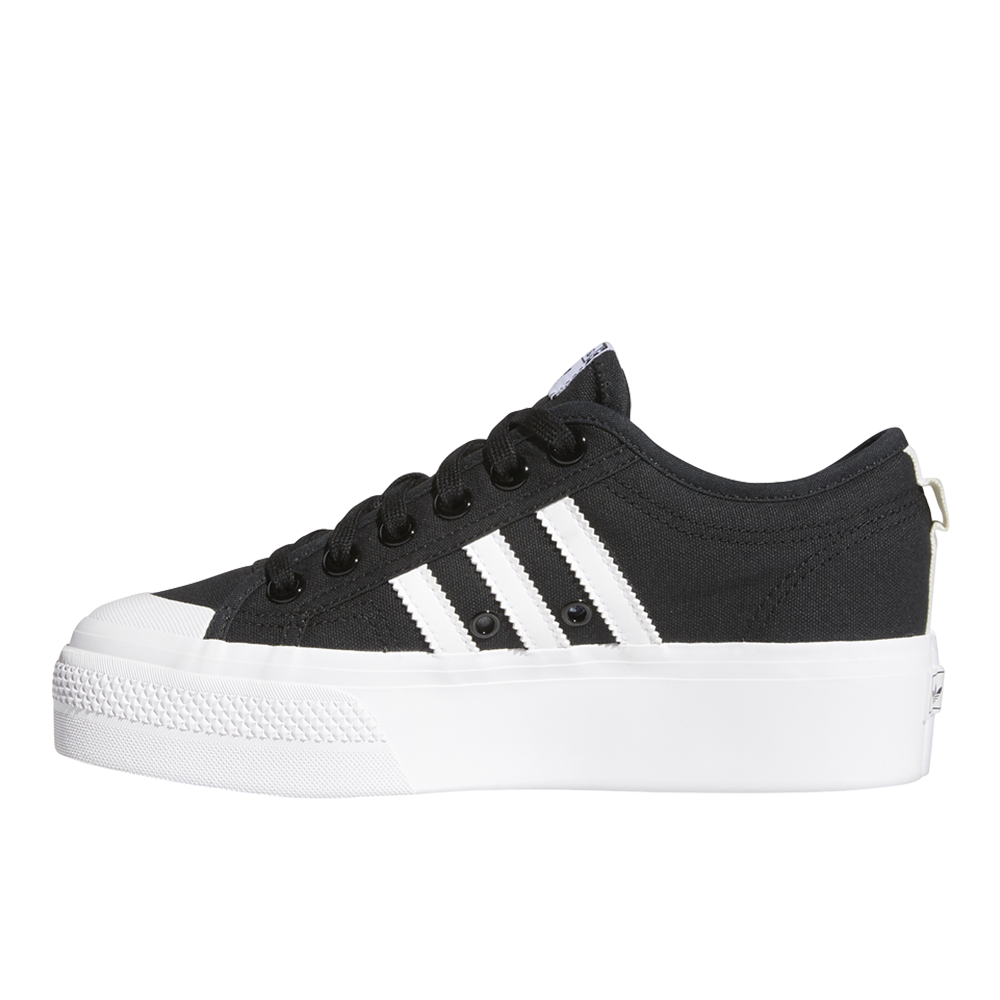 Nizza Platform Lace Up Sneakers Product Details Lace closure Textile upper Ethylene Vinyl Acetate sockliner Vulcanized rubber platform outsole Color: Core Black/Ftwr White What do skinny jeans and flowy skirts have in common? Both look fantastic with a trendy platform like these adidas Nizza shoes. Step up, step out and give every outfit a little lift. Even if you're just knocking around town. Additional Details Manufacturer Color: Core Black/Ftwr White Color: Black Occasion: Casual Gender: Womens Age: Adult Brand:
