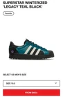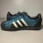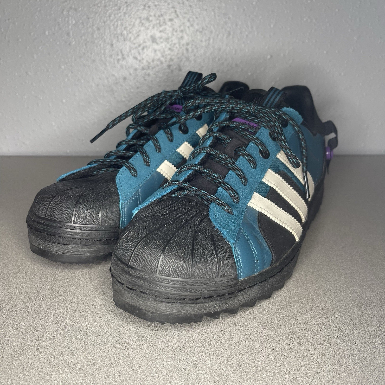 You are purchasing a rare pair of adidas Superstars. These shoes have been very lightly worn, maybe once or twice. These come in a US Men’s size 10.5 without the original box. Insoles and outsoles are clean, see photos please. The adidas Superstar Winterized 'Legacy Teal Black' updates the iconic sneaker with a rugged build designed for the great outdoors. Made in part with recycled content, the upper combines teal leather paneling with black nubuck overlays, cream-colored leather three-stripes, and the iconic rubber shell toe. Webbing pull tabs are added to the tongue and lateral heel, the latter accented with a purple Trefoil emblem. Underfoot, a sawtooth rubber outsole provides reliable traction on off-road terrain. All sales final, please see all photos and ask any questions before making your purchase. No returns, Thanks! 100% positive feedback so buy with confidence :)
