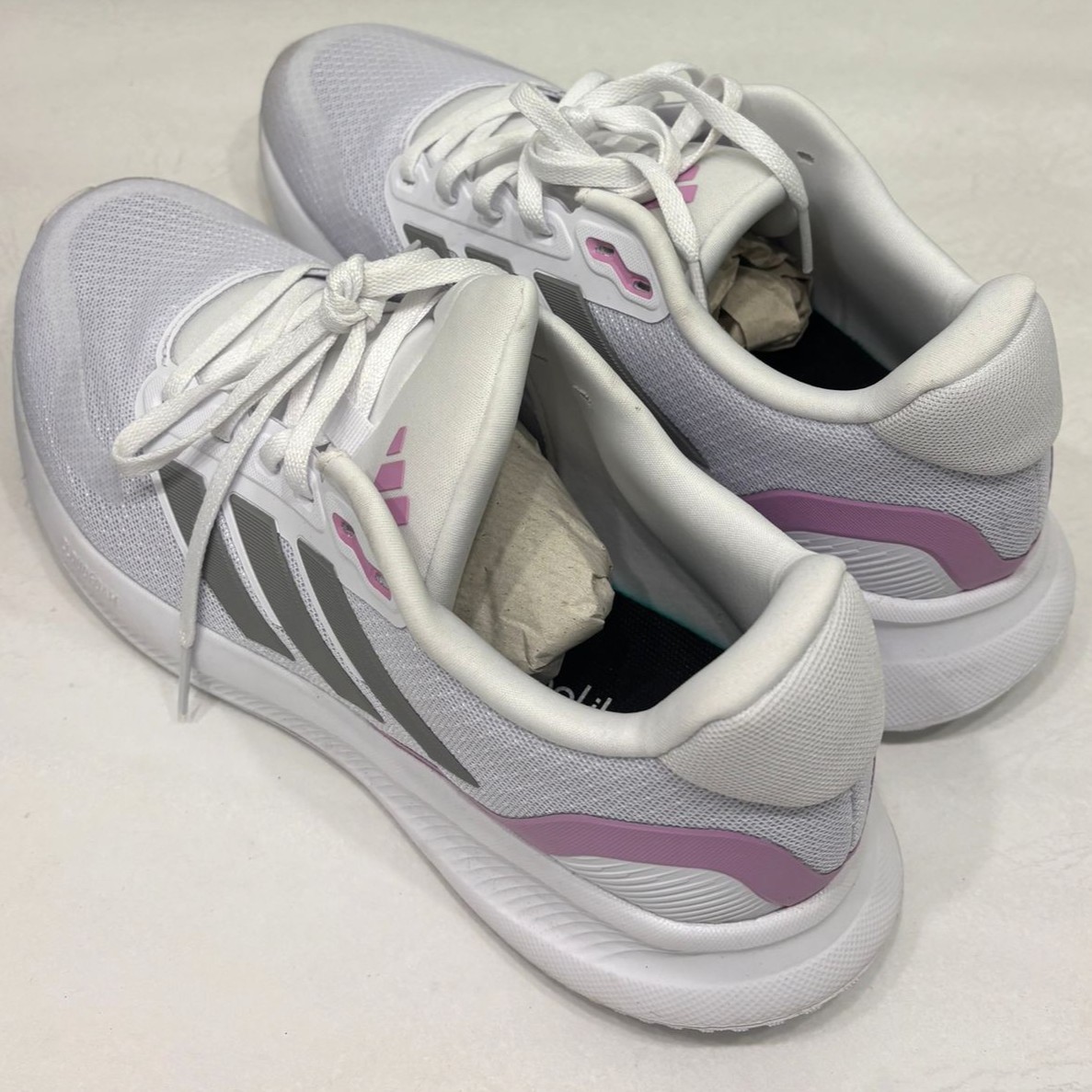 Adidas Runfalcon 5 Women’s Running Shoes – White / Gray / Pink – Size 8.5 Pre-Owned – Worn Once Only These adidas Runfalcon 5 shoes are in excellent, near-new condition. They’ve only been worn one time, with clean uppers and minimal dirt on the outsoles. No damage, no tears, and no defects. Lightweight, breathable, and perfect for running, walking, gym workouts, or everyday wear. Condition Pre-owned – worn once Clean mesh upper Light dirt on soles from single use No damage, stains, rips, or defects Stored in a smoke-free home Product Details Brand: adidas Model: Runfalcon 5 Color: White / Gray / Pink Size: Women’s 8.5 US (UK 7 / EU 40⅔) Upper: Lightweight breathable mesh Insole: Cushioned foam Outsole: Durable rubber with good traction Closure: Lace-up Shaft: Low-top Style: Running / Walking / Gym / Casual Features: Lightweight, cushioned, breathable, slip-resistant, supportive Ideal For: Running, jogging, gym workouts, walking, cycling, everyday wear