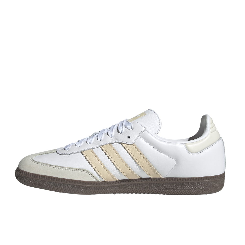 Samba OG Lace Up Sneakers Product Details Leather and synthetic upper Lace closure Textile lining Rubber outsole Color: Ftwr White/Sand Strata Still turning heads after over 70 years, the Samba OG Shoes are a true icon. The smooth leather upper and gum rubber outsole radiate retro 3-Stripes style. A print on the T-toe gives it a sophisticated twist. Additional Details Manufacturer Color: Ftwr White/Sand Strata Color: White Occasion: Casual Gender: Womens Age: Adult Brand: