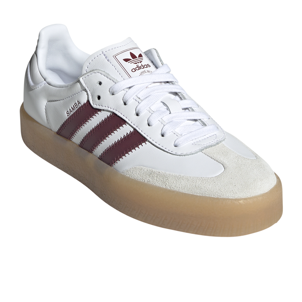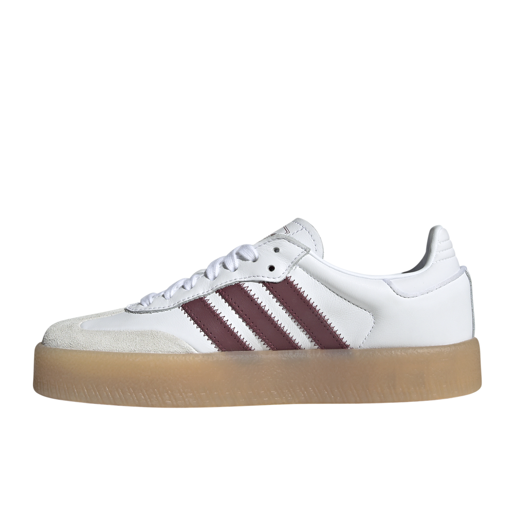 Sambae Shoes Product Details Lace closure Nubuck and leather upper Textile lining Translucent gum rubber outsole Color: Ftwr White/Shadow Red These adidas Sambae shoes add a modern twist to an iconic Samba design. Once an indoor football shoe, this version is made with a smooth leather upper, translucent gum rubber platform outsole and premium embroidered 3-Stripes that let the look transition seamlessly to the streets. Subtle details like a stitch-and-turn toe cap make a stylish statement. Additional Details Manufacturer Color: Ftwr White/Shadow Red Color: Red Occasion: Casual Gender: Womens Age: Adult Brand: