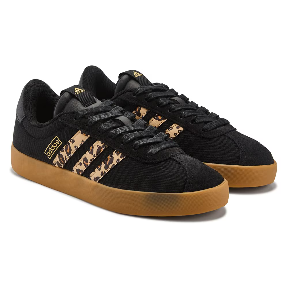The adidas Vl Court 3.0 Cheetah Lave Up Women's Shoes in size 6.5, 8, and 8.5 are a stylish and comfortable option for casual wear. Featuring a breathable design with a lace-up closure, these sneakers offer a flat heel for all-day comfort. The solid black color with a cheetah print adds a trendy touch to the athletic shoe, while the rubber outsole provides durability. Made with leather and suede materials, these adidas shoes are perfect for women who appreciate both fashion and functionality.