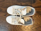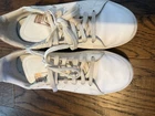 The product is a pair of adidas Women's Stan Smith tennis shoes in size 6.5. The shoes are designed in a stylish gold and white color combination with a leather upper material. They are part of the adidas Stan Smith product line and were released in June 2021. These sneakers are perfect for athletic activities and showcase the iconic adidas brand in a sleek and fashionable style. Ideal for women looking for a trendy and comfortable shoe option for their sporty lifestyle. These are in amazing condition. I am unsure of the style number so please see pictures. You will not be disappointed in these.