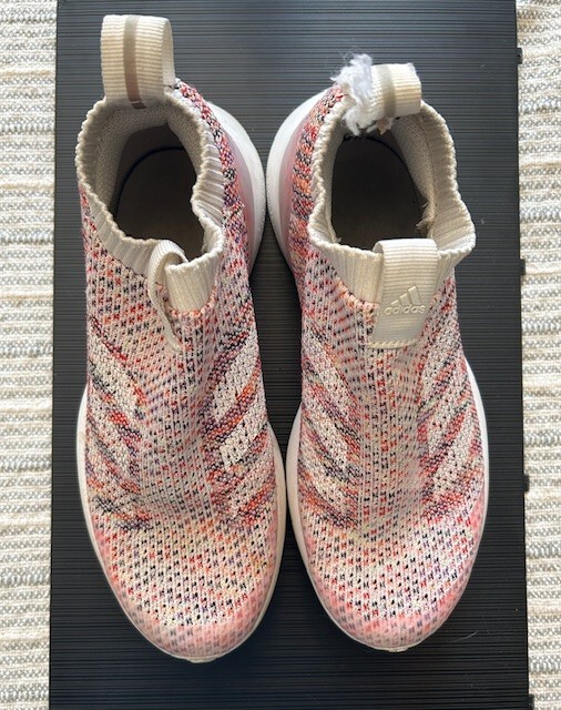 These Adidas tennis shoes are a great find—super comfortable and still in solid shape despite minor wear. The frayed heel tag doesn’t affect performance, and they fit true to size. Perfect for casual wear or light workouts!