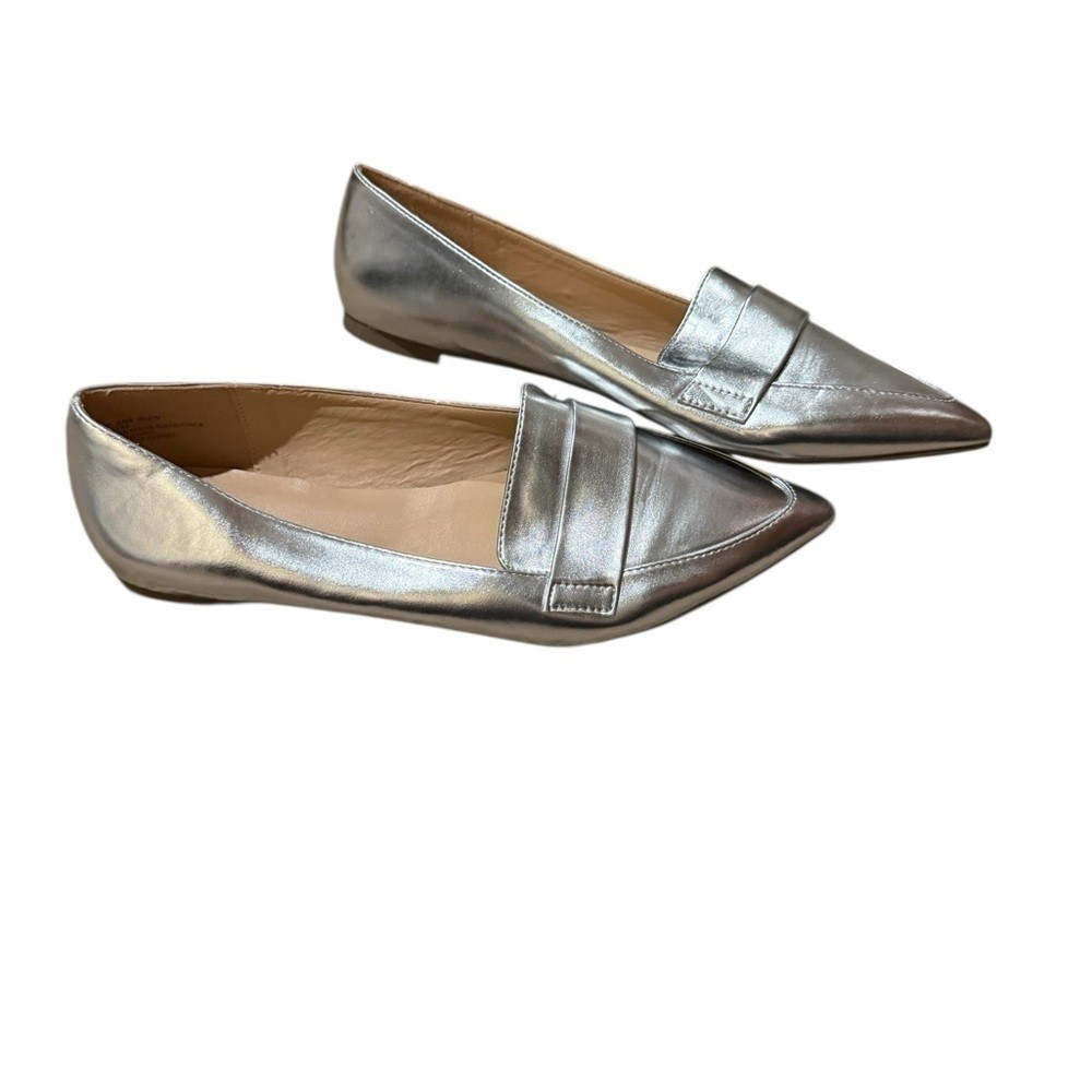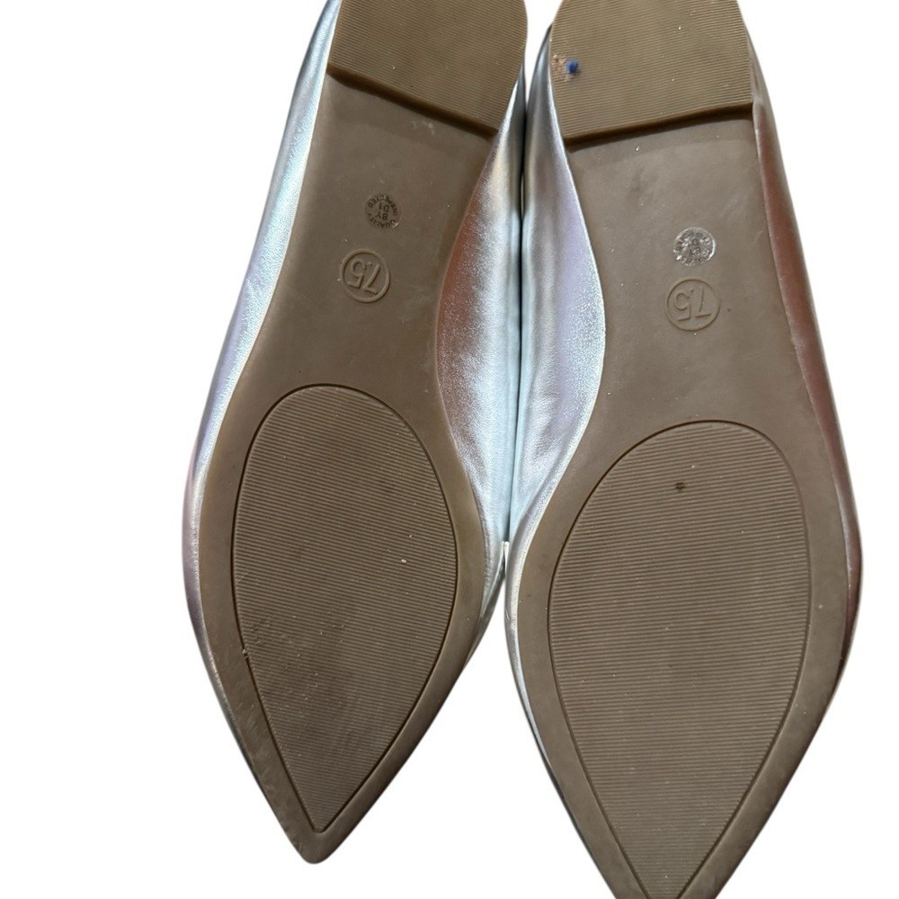Shiny silver flats by a.n.a. Sleek and stylish design. Ideal for versatile wear.