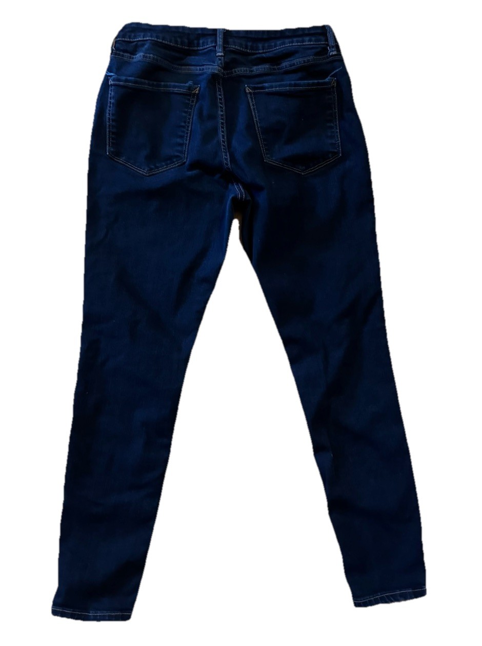 The a.n.a a new approach Women's Size 8 Mid-Rise Skinny Jeans in dark wash stretch are a stylish and versatile choice for any season. Made from a blend of polyester, spandex, cotton, and rayon, these jeans offer a comfortable and flattering fit. The mid-rise waist and slim fit give a modern and on-trend look, while the solid blue color and denim fabric add a classic touch. With features like stretch and pockets, these jeans are not only fashionable but also practical for everyday wear. Perfect for pairing with a variety of tops and shoes, these skinny jeans are a must-have addition to any woman's wardrobe.