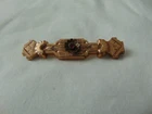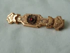 measures 2-1/3 inches across. very ornate Etruscan Revival design and style. genuine Garnet mounted in center of brooch. very collectible.