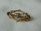 Homeantique Victorian gold filled sapphire crystals seed pearl brooch