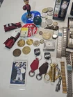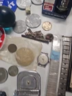 This lot includes a variety of antique and vintage items from an estate, such as coins, collectibles, and wristwatches. It is a mix of different items that have been collected over time and is perfect for someone interested in a diverse collection of unique pieces.
